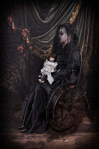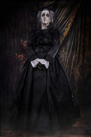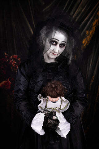 "In her professional experience, the greatest treasures were most often guarded by the slyest and cruellest dragons."Edith Mason from 'House of Small Shadows'. She lives!When an artist is inspired sufficiently by my horrors to interpret them, I'm thrilled. I've said it before and I reiterate the sentiment.This fabulous creation isn't a sketch or painting, but a kind of living installation, and involves costume, makeup, set design, talent and time. So I raise my horns and hoofs to Abbey Jones, her mother, Lily, and Leon Britton, the photographer.Feast your eyes.