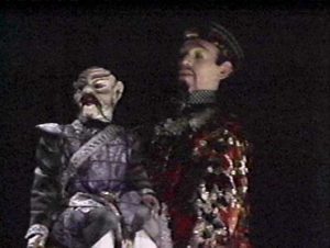 The way in which Sin gets inside Professor Litefoot’s house, as a kind of a Trojan dummy inside a laundry hamper, was solely responsible for creating my enduring unease of wicker baskets (interestingly, a friend once admitted the very same fear after having seen Mr Sin in his basket, and at the same age as me). For years, I could never use a bathroom in comfort if there was a wicker basket present … When characters moved close to Sin’s inert form in the theatre, backstage, I could barely look at the screen for fear that he would move.