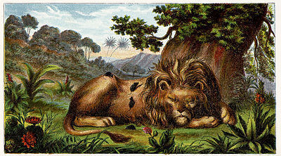 An illustration of the start of the fable from Aunt Louisa’s Oft Told Tales, New York, 1870sThe Lion and the Mouse is one of Aesop's Fables, numbered 150 in the Perry Index. There are also Eastern variants of the story, all of which demonstrate mutual dependence regardless of size or status. In the Renaissance the fable was provided with a sequel condemning social ambition.
