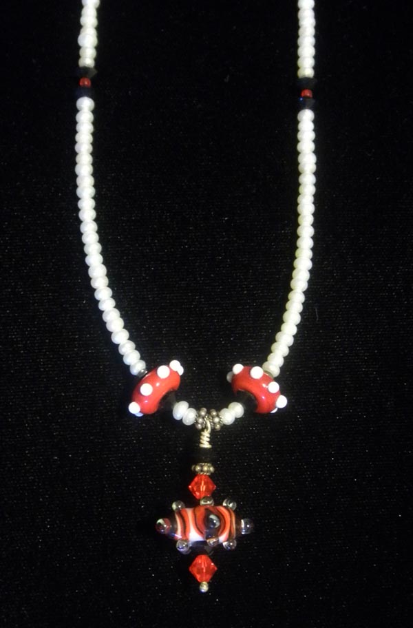 And what can you win? A lovely candy cane inspired necklace of freshwater pearls, Swarovski crystal and lampwork glass beads designed and created by me! I know, it's not the best photo. But the necklace is beautiful!You can also use the Rafflecopter contest below to submit extra entries to increase your chances of winning. Be sure to add your email to the comments or we won’t know where to send the gift!