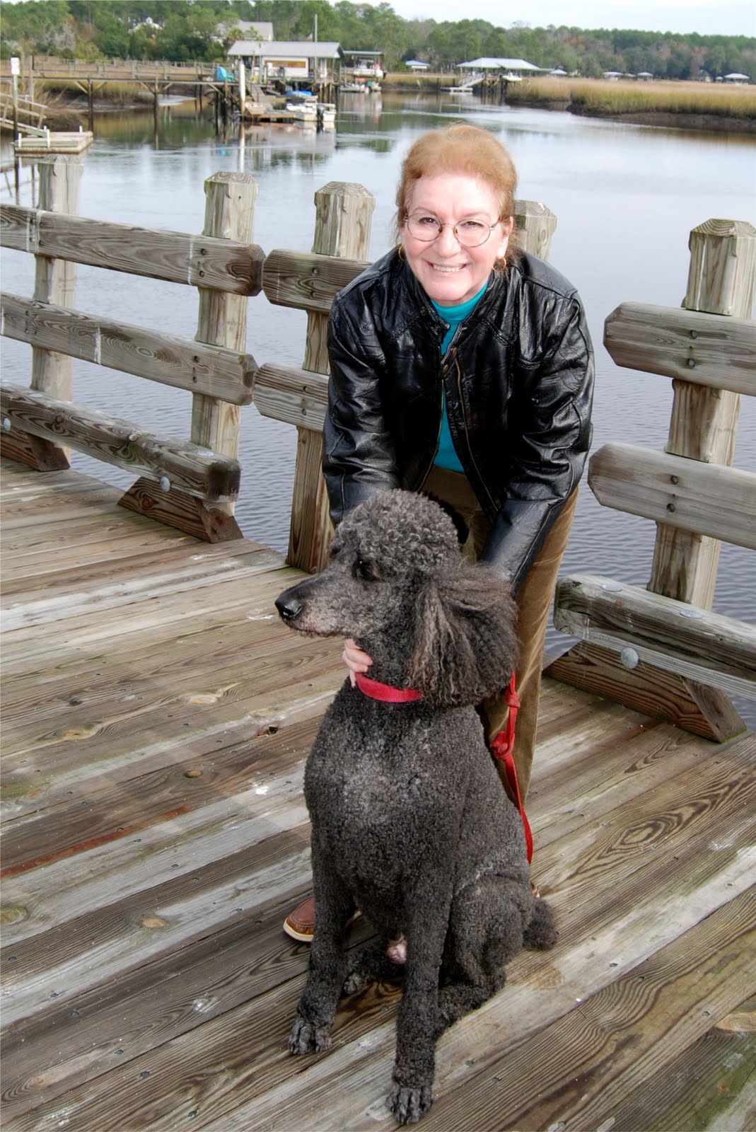 At one o'clock (if I'm not playing golf), I write until five with necessary breaks - for me and Bogey, the demanding standard poodle who adorns my book covers.