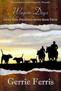 WAGON DOGS, my October release now has a face. Jenifer Ranieri of Desert Breeze Publishing designed the jacket, which expertly captures the atmosphere of the romantic suspense story. WAGON DOGS is Book 3 in the Laura Kate Plantation Series. WHEN SERPENTS DIE and HONORED DAUGHTERS are books 1 and 2. See more about these ebooks at http://www.gerrieferrisfinger.com/