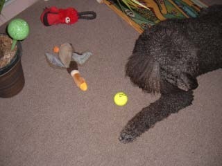Bogey, the black standard poodle, selected a name that corresponded to a number on one of his tennis balls and came up with a winner. I will email her for an address and send the book. I'm hoping for a review, but there were no strings attached to entry. Not even buying one of my books for sale at the festival.