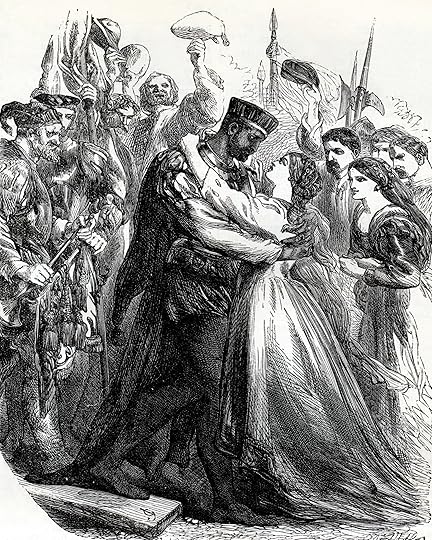 An engraving from William Shakespeare's play ‘Othello’ depicting the character Iago embracing his wife, Emilia. (© Lebrecht Music and Arts Photo Library/Alamy Stock Photo)