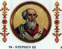 752 Pope Stephen (II) III elected; he was the first sovereign of the Papal States, crowned Pepin as King of the Franks, corresponded with the Emperor Constantine on the subject of the restoration of the sacred images, restored many of the ancient churches of the city, and built hospitals specifically for the poor near St. Peter's church where he is buried.