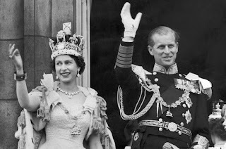 Queen Elizabeth and the Duke of Edinburgh wave from the famous balcony at Buckingham Palace after the Queen's coronation on 2 June 1953. (Keystone-France/Gamma-Keystone via Getty Images)