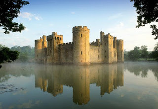 Built in the 1380s, the moated exterior of Bodiam Castle in East Sussex answers the popular ideal of a medieval castle. The building is brilliantly contrived to give the illusion of scale and rugged strength. © Alamy