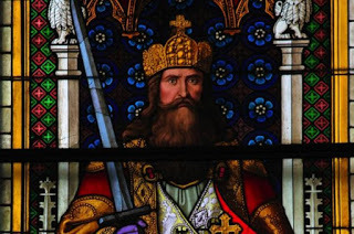 Stained-glass window depicting Charlemagne, who was made Roman Emperor