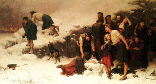 1692 Massacre of Glencoe Scotland where 38 members of the MacDonald clan were murdered by soldiers of the Campbell clan for not pledging allegiance to William of Orange.