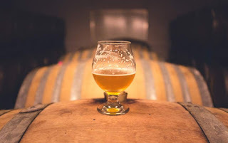 Featured image: A glass of beer atop old barrels ( public domain ).