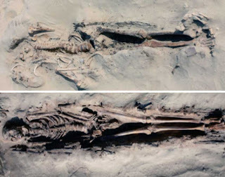 Featured image: An undisturbed skeleton of a man in the extended, supine posture typical at the cemetery; and the burial of a man with a common pattern of disturbance in which the upper torso has been jumbled by robbers and the skull removed. (Antiquity photo)
