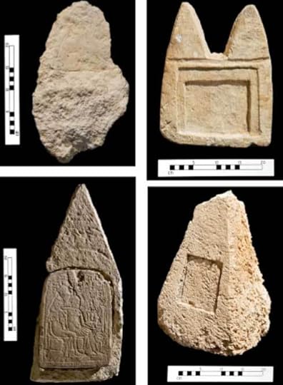 Some of the simple grave markers and steles at Amarna commoners’ cemetery; note the pyramidal shape of the bottom two. (Antiquity photos)Analysis of the skeletons tells a sad tale of the life of the people there. Some of the skeletons showed signs of early childhood hunger, anemia and scurvy. As far as workload injuries, the team found severe degenerative joint disease in at least one limb in nearly 60 percent of the skeletons.