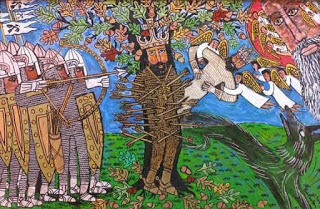 869 Edmund the Martyr died. Saint Edmund was king of East Anglia. His gruesome death at the hands of the Danes led to legends and a shrine at what is now Bury St. Edmund's, West Suffolk.