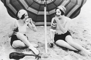Actresses Dorothy Sebastian and Joan Crawford enjoy some hamburgers on a Los Angeles beach, c1925-35. (Credit: Getty)