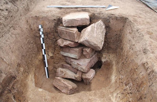 Featured image: Sandstone blocks, likely placed there by people from medieval times or later, were found in a shaft in the Roman settlement. (Image credit: Thomas Maurer.)