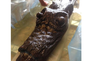 A wooden figurehead depicting a doglike figure or monster from a historic 15th century Danish ship has been pulled from Swedish waters. This is one of the oldest known preserved wooden carvings of its kind in the world. Wood disintegrates relatively quickly unless it is preserved by submersion.