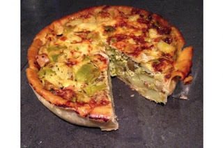 2) Roll the dough into a greased pie dish and blind bake in the oven at 200°C/gas mark 6, for about 10 mins.