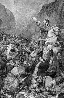 778 The Battle of Roncevaux Pass (Pyrenees on the border between France and Spain), at which Roland (commander of the rear guard of Charlemagne's army) was killed. The battle was romanticized by oral tradition into a major conflict between Christians and Muslims, when in fact both sides in the battle were Christian. The legend is recounted in the 11th century The Song of Roland, which is the oldest surviving major work of French literature, and in Orlando Furioso, which is one of the most celebrated works of Italian literature.