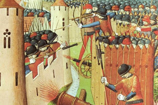 Siege towers and cannon can be seen in this depiction of the Siege of Orleans but no boiling oil