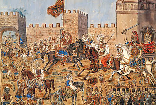 70 First Jewish-Roman War: Siege of Jerusalem -Titus, son of Emperor Vespasian, stormed the Fortress of Antonia north of the Temple Mount. The Roman army was drawn into street fights with the Zealots.