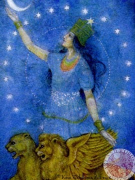 Ishtar, or Innana, came into my life over 15 years ago when I picked up a book about goddesses in the children’s library and was inspired to paint her, my first ever water colour. Since moving to Wales, she has been a constant in my life and with her support and guidance, I’ve embarked on a new spiritual and emotional journey.