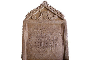 Pompeii Couple Reunited in Marble Inscription When it was turned over, the honey colored stone revealed fine decorations and five lines of Latin inscription which read: “D.M. BODICACIA CONIUNX VIXIT ANNO S XXVII,” possibly meaning: “To the shades of the underworld, Bodicacia, spouse, lived 27 years.”