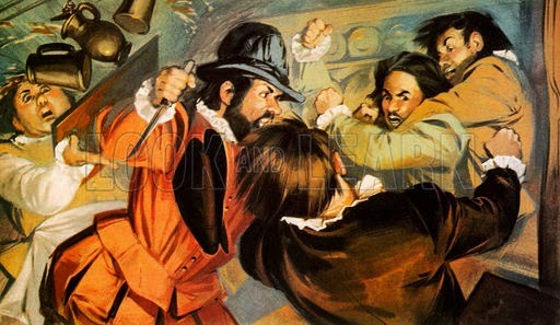 1593 Leading Elizabethan playwright Christopher Marlowe was stabbed to death in a pub brawl in Deptford.