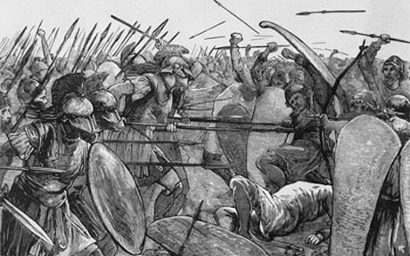 404 BC Athens surrendered to Sparta, ending the Peloponesian War.