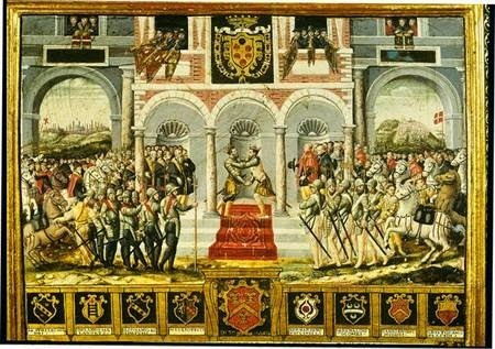 1559 Philip II of Spain and Henry II of France signed the peace of Cateau-Cambresis, ending a long series of wars between the Hapsburg and Valois dynasties.