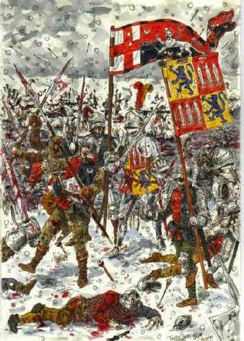 8) The battle around the standards was brutalAll accounts attest to Richard's strength in battle. Even John Rous, who compared Richard to the Antichrist, admitted “if I may say the truth to his credit, though small in body and feeble of limb, he bore himself like a gallant knight and acted with distinction as his own champion until his last breath”.