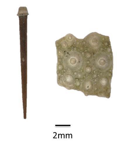Sea urchin spine and body fragment from Herculaneum, AD79. © Erica Rowan
