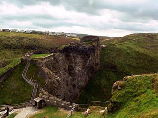 Tintagel Castle is a castle located on Tintagel Island, a peninsula connected to the North Cornwall coast in England by a narrow strip of land. This castle is said to have been an important stronghold from around the end of Roman rule in Britain, i.e. the 4th century AD, or the 5th century AD until the end of the 7th century AD. Tintagel Castle is perhaps best known for the claim that it was the place where the legendary King Arthur was conceived.
