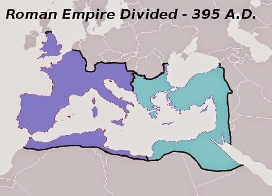 395 the Roman Empire was split into eastern and western parts upon the death of Emperor Theodosius I, whose will provided that his two sons would inherit the two parts.