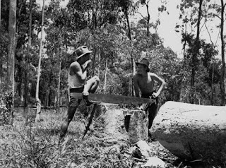Two young men using a cross-cut saw on the St. Lucia Farm School, 1936. ( Public Domain )