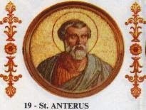 235 St. Anterus became Roman Catholic pope. He was Pope from November 21, 235 to January 3, 236, and succeeded Pope Pontian, who had been deported from Rome along with the antipope Hippolytus to Sardinia. Anterus was the son of Romulus, born in Petilia Policastro and is thought to have been of Greek origin, but the name could indicate that he was a freed slave. He died on January 3, 236 of undetermined causes.