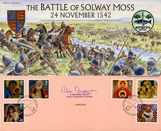 1542 at the Battle of Solway Moss: The English army defeated the Scots. The English force of approximately 3,000 was far outnumbered by an army of at least 10,000 Scots, but in-fighting among the invaders helped the English commander, Wharton, rout his foes in this surprising victory.