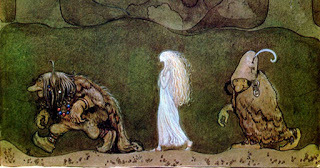 Top image: Painting by John Bauer of two trolls with a human child they have raised