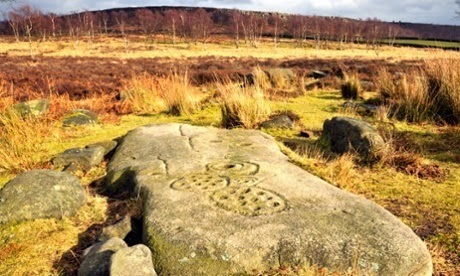 A replica rock carving on Gardom’s Edge. Photograph: Roy Childs/Alamy