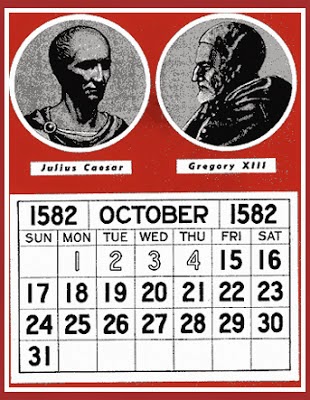 1582 the Gregorian calendar was reformed. To adjust the inaccuracy in the date caused by an extra day per century in the Julian calendar, Pope Gregory XIII ordered ten days to be subtracted from October of 1582. The calendar jumped from October 4 to October 15 and the new Gregorian calendar, used today, was devised.