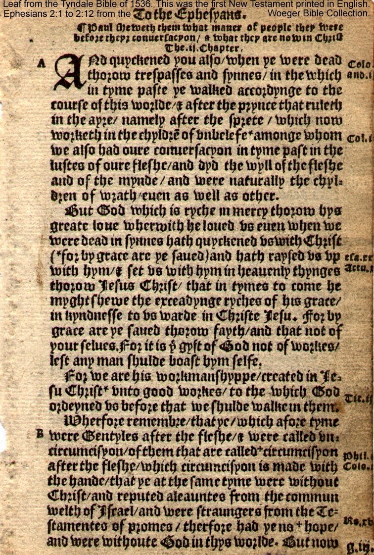 1535 the first English translation of the entire bible was printed, with translations by Tyndale and Coverdale.