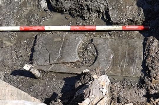 Image: The 2000-year-old wooden toilet seat excavated from a muddy trench. Credit: Vindolanda Trust.