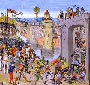 1415 Hundred Years War: King Henry V of England army landed on mouth of the Seine River, and organized the siege of the town of Harfleur (now part of Le Havre).