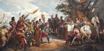 1170: Thomas Becket and King Henry II temporarily reconciled. Becket's six-year self-imposed exile from England was resolved when he met with Henry and King Louis VII of France at a conference in Freteval and settled on an uneasy truce. Becket made preparations to return to his See in Canterbury.