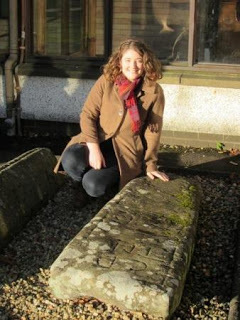 PhD student Megan Kasten with the rediscovered stone. Image courtesy Lynne Black.