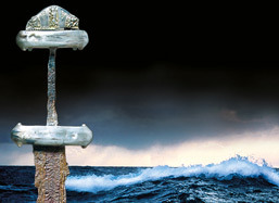 Sword, late 8th–early 9th century. Kalundborg or Holbæk, Zealand, Denmark. Photo: John Lee. © The National Museum of Denmark. Background: Kim Westerskov/Getty Images.