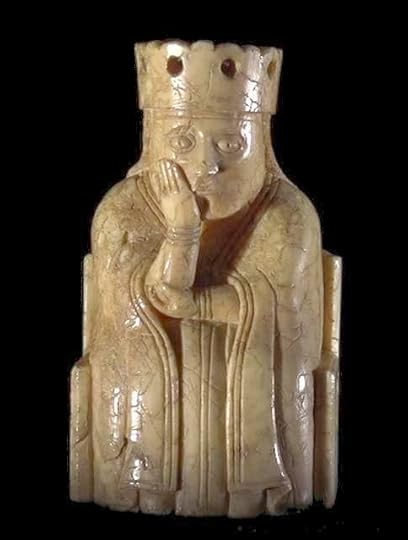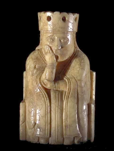 Queen, Lewis chessmenLate 12th centuryThe Lewis chessmen, found buried on the isle of Lewis in 1831, show not just the skill of the Vikings but also the sophistication of their lifestyle, for these warriors were also merchants and explorers who sailed as far as America and down the rivers of Russia. This chess queen resting her face on her hand in an expression of gloom was probably left on Lewis by a merchant sailing to Dublin, a Viking colony. Why's she so sad? Is she contemplating the vast Atlantic?