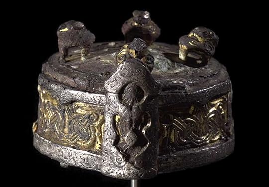 Oxidised to a pale green over the past one thousand years or so, it's a beautifully worked piece, which speaks of art and decoration as much as plunder and booty, and I ask project curator Tom Williams if there's something of a re-branding going on here, an attempt to get away from the enduring image of Vikings as bloodthirsty barbarians, out for all they could get. Yes and no seems to be the cautious answer. The academic discourse has been veering in that direction for over 50 years now, and if anything the British Museum is putting a bit of cold steel back into the debate.