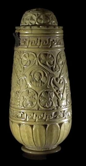Byzantine flask8th - 9th centuryAs you turn this elegant carved ivory flask around, its intricate patterns of foliage and Greek key-pattern "meanders" become more and more impressive. Portraits and animals fold into the tendrils of vegetation, adding to the layers of beauty. This is a refined work of art which the Vikings got from the eastern empire of Byzantium on their travels. Comparing it with their own creations, it seems so much more "civilised". But which is more fascinating - this or a Viking ship's snarling dragon figurehead?