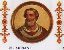 795 Pope Adrian I died. The relationship of Adrian to Charlemagne was considered an ideal expression of Church and State in a united Christian society.