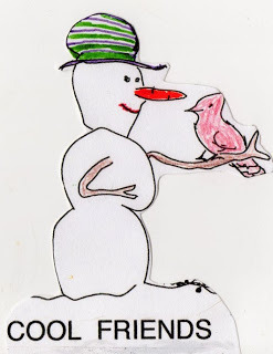 Cardinal stayed with Snowman Fred.The bird and Fred was quite a pairAnd together they would shareA song, a joke, or a dream or two.She knew she was safe right there.
